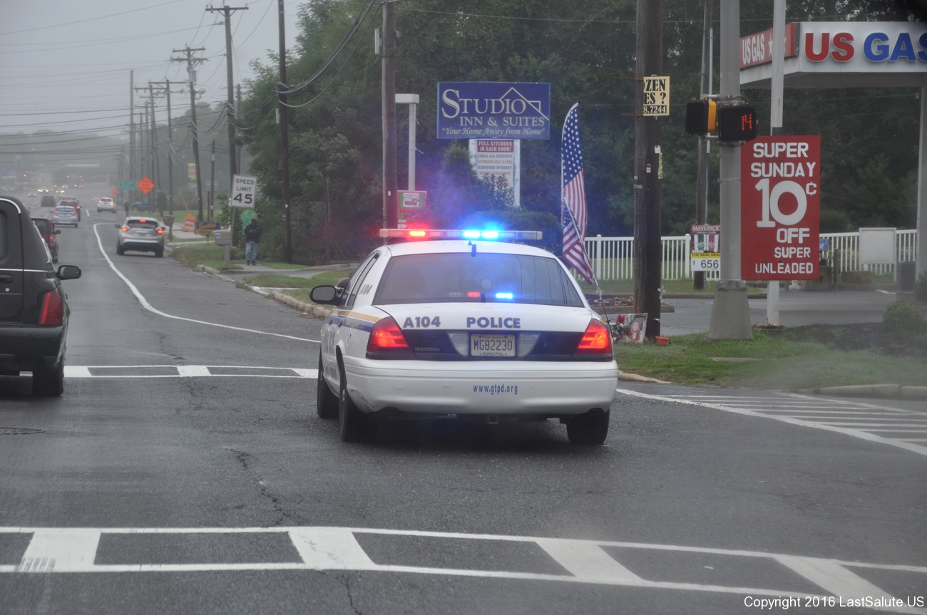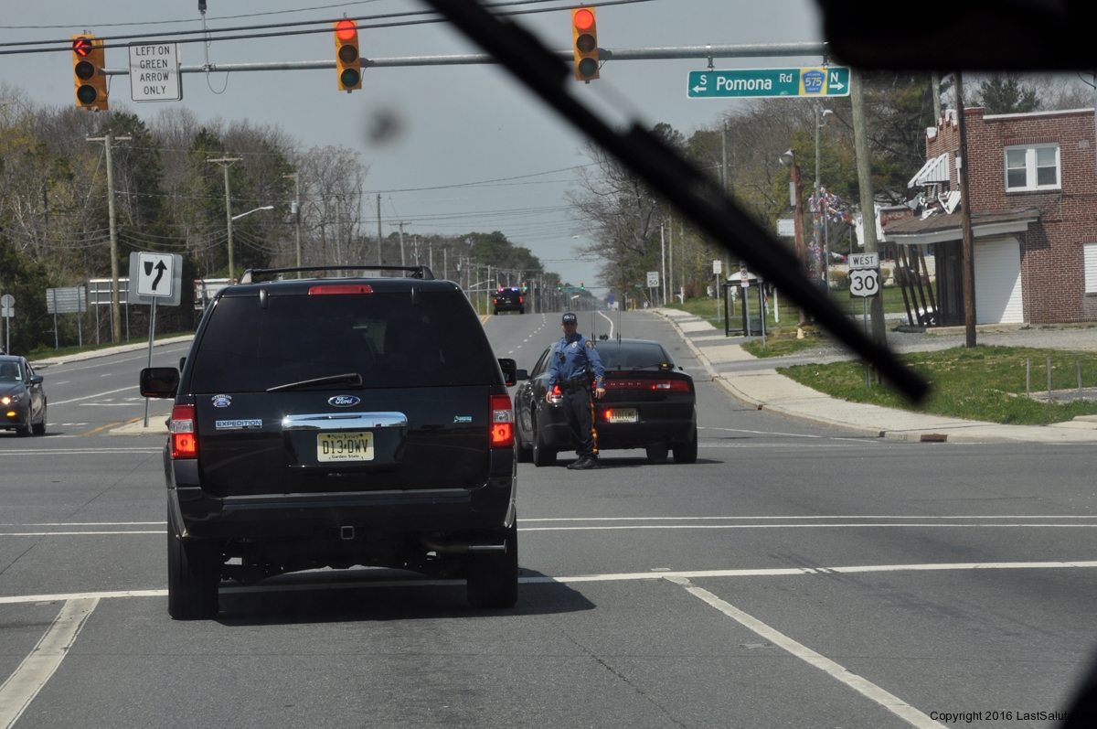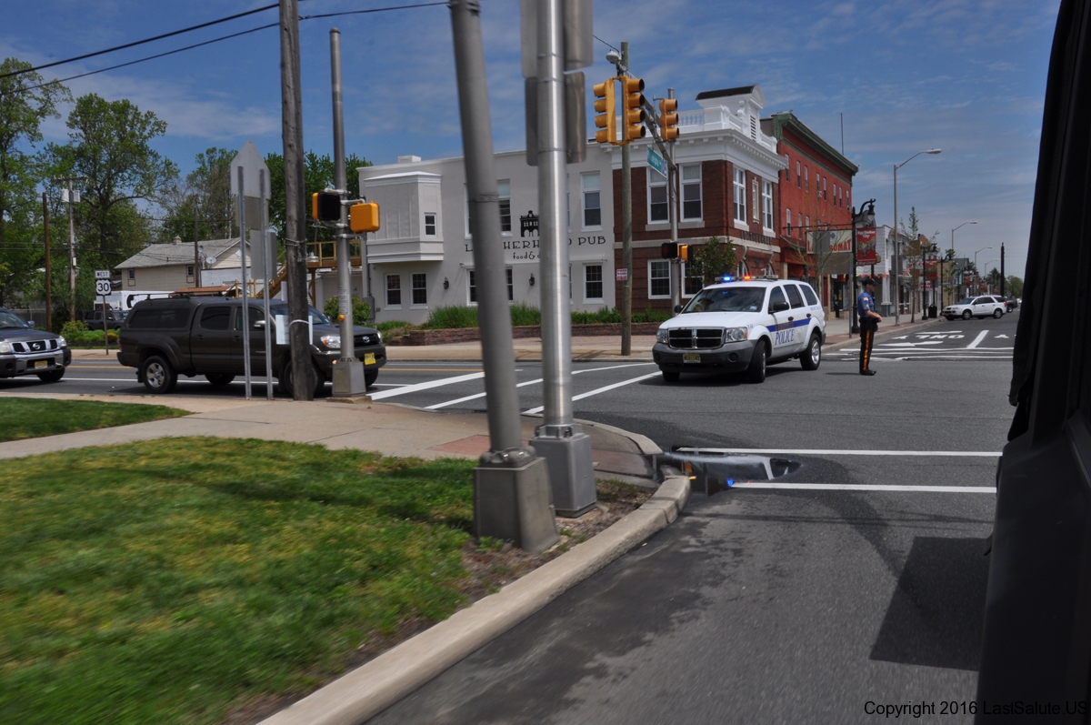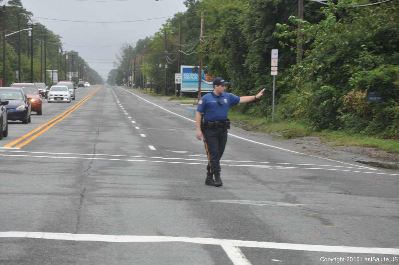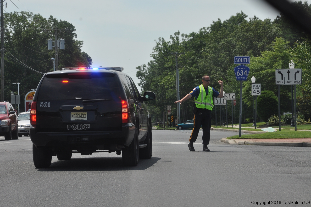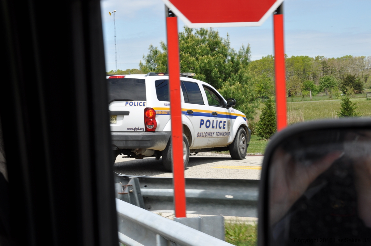 The Brigantine Police and fire departments lead the vets in all the way from the bridge with the American Legion Riders.